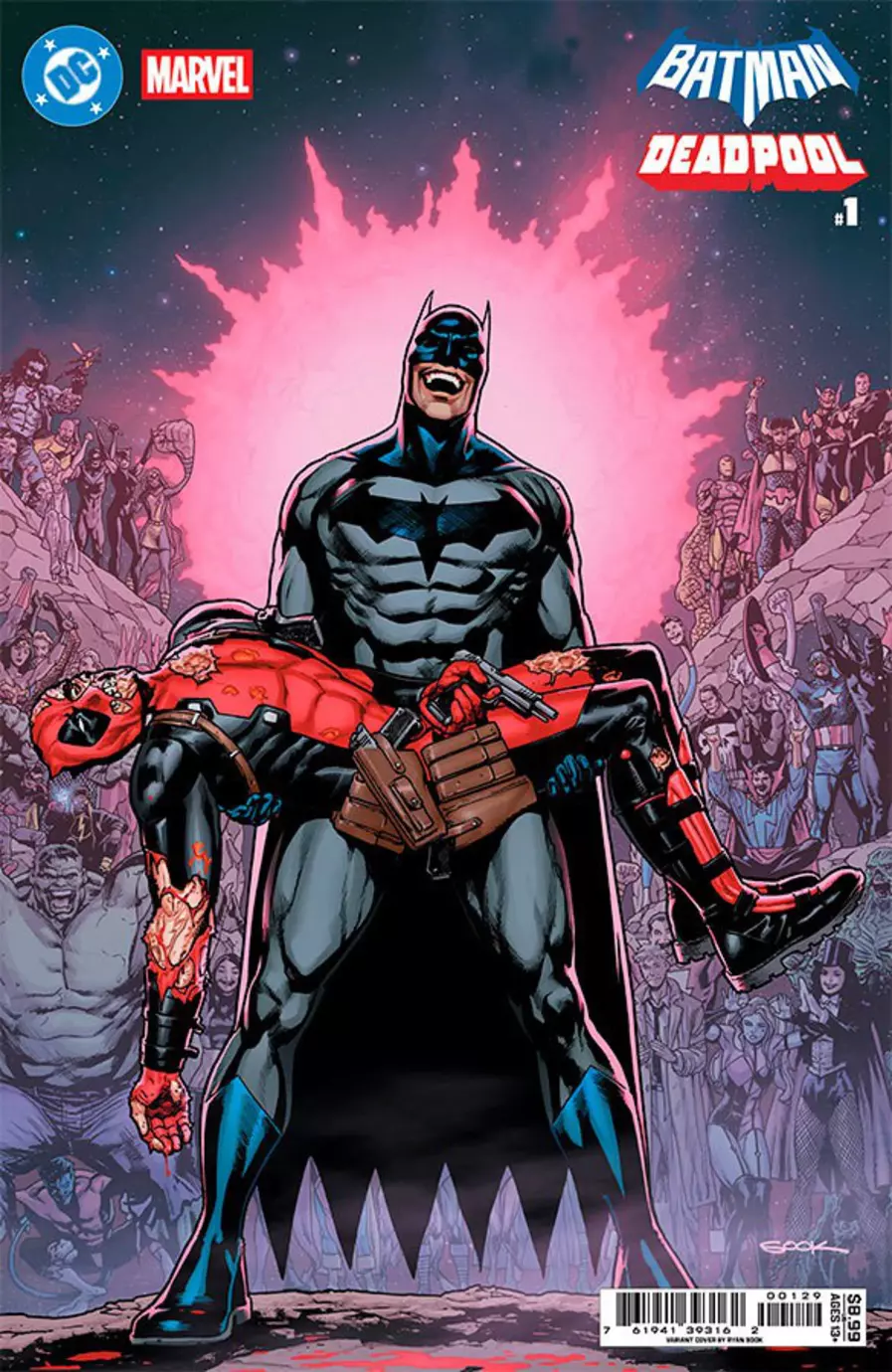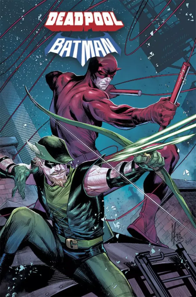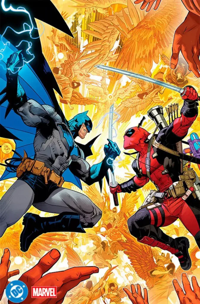 O primeiro encontro dos personagens chegou aos EUA em setembro pela Marvel, em “Deadpool/Batman #1” com roteiro de Zeb Wells e arte de Greg Capullo. Nesta primeira edição, Wade Wilson, o mercenário tagarela mais famoso da Marvel, é contratado para um trabalho em Gotham, porém, acaba chamando a atenção do Cavaleiro das Trevas.