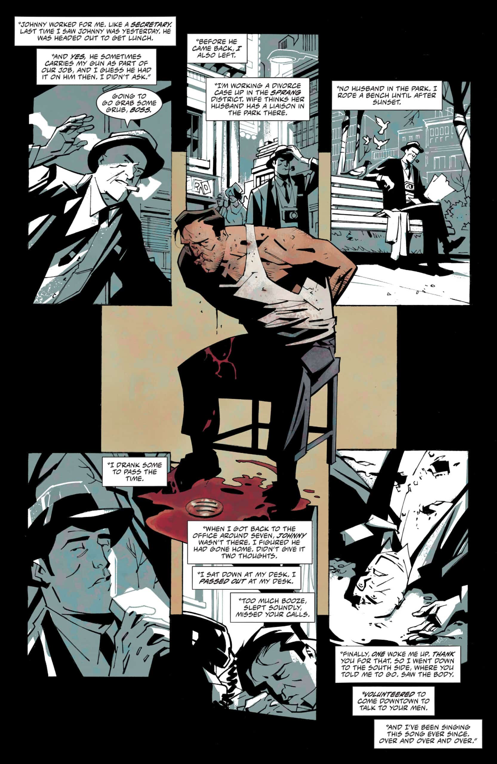 O desenhista Phil Hester e a colorista Jordie Bellaire formam uma equipe formidável, sem medo de brincar com alguns painéis e fazer páginas de uma brutalidade impressionante, Aliás, o visual combina muito com o tom noir da obra.