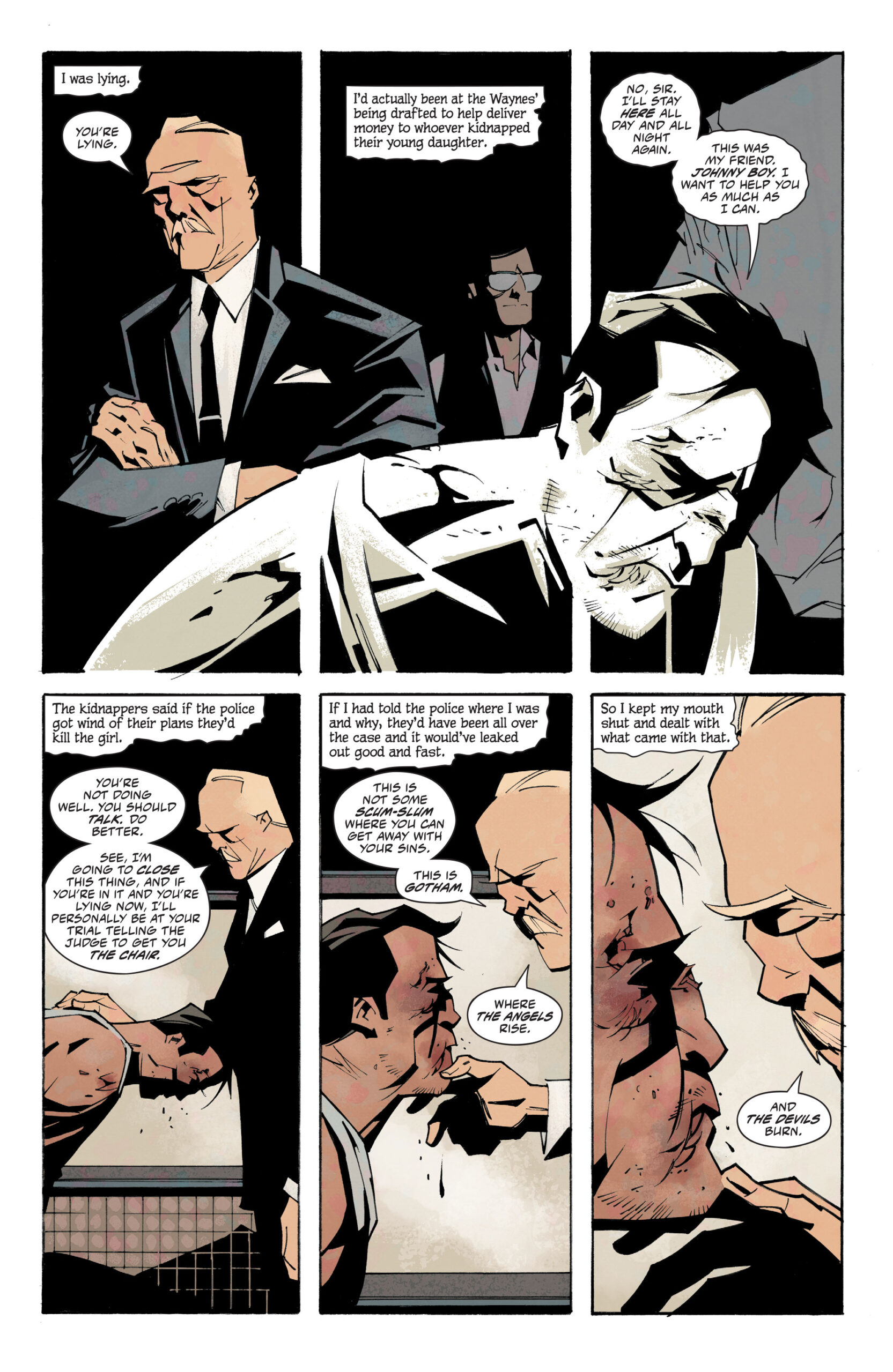 À medida que vamos acompanhando essa investigação, conhecemos uma Gotham por trás das aparências. Uma cidade que abriga tensões sociais e raciais. Questão racial essa que é muito presente no enredo da HQ. O protagonista é filho de mãe negra, mas sua pele é clara o suficiente para que tenha sempre se passado por um homem branco.