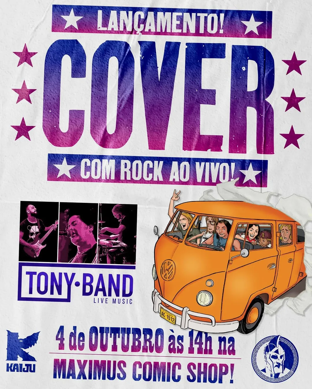 A Kaiju Editora anunciou um evento de lançamento da HQ “Cover”, escrita por Mauro de Abreu, desenhada por Clayton Inlôco e com tons de cinza e letras por Silas Chosen, no dia 4 de outubro. Durante o lançamento haverá show da banda Tony Band Live Music apresentando as músicas que inspiraram o quadrinho.